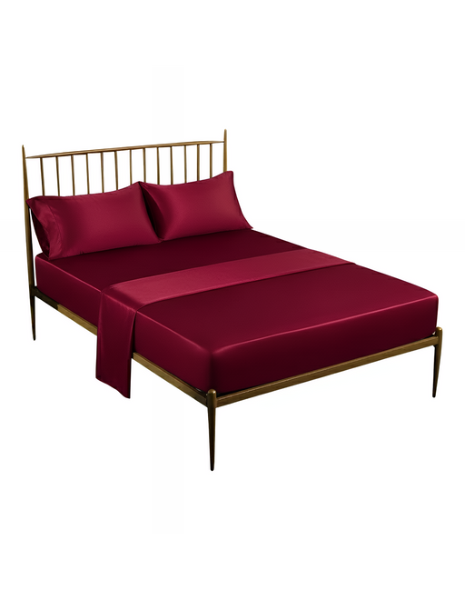 Anycozy Fitted Sheet Full Size Winered Luxury Silky Beddings Set with Pillow Cases