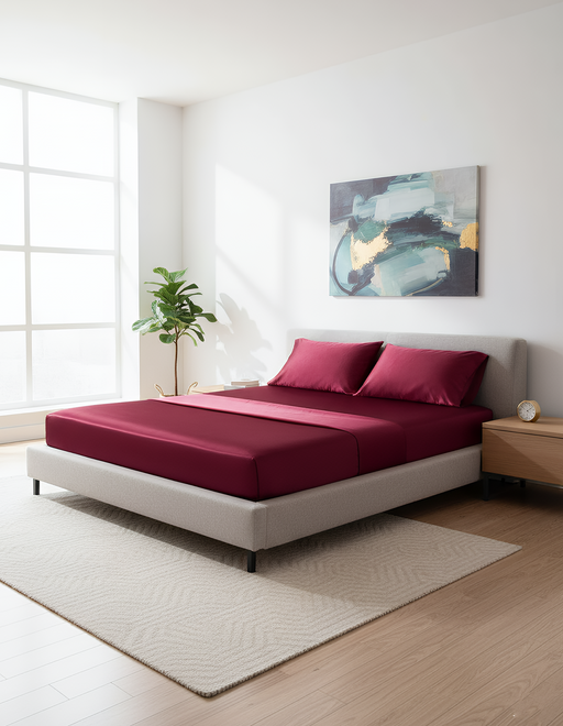 Anycozy Fitted Sheet Queen Size Winered Luxury Silky Beddings Set with Pillow Cases
