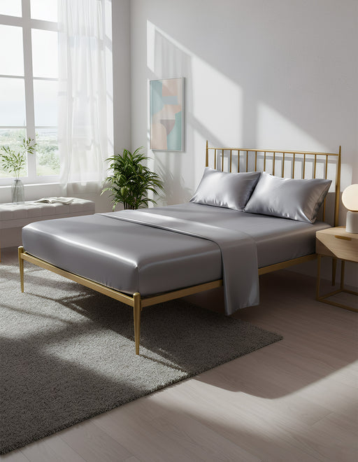 Anycozy Fitted Sheet Twin Size Grey Luxury Silky Beddings Set with Pillow Cases