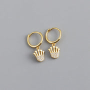 ANYCO Earrings Gold Plated Princess Crown Pave Crystal Zircon Pendant Stud For Women Girl Fashion Stylish Rock Punk Accessories Jewelry Gifts