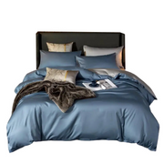 Anycozy Bed Sheet Blue Light Grey Ultra Soft Luxury Egyptian Cotton Bedding Cover Twin Size 4 Pcs Bed Set