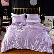 Anycozy Beddings Lilac EU Double Size 3 Pcs High End Satin Smooth Duvet Cover Set Luxury Polyester Silky Soft Cozy Bedding Set