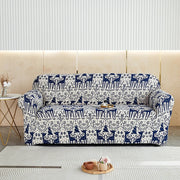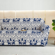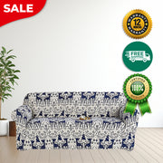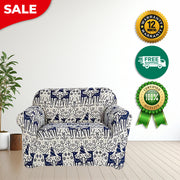 Anyseat Sofa Cover Blue Christmas Reindeer Design Stretchable Non Slip Slipcover