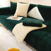 Anyseat Sofa Towel Super Soft Wave Dark Green Rabbit Plush Quilted Couch Cover L-shaped Sectional Anti-slip Sofa Cover