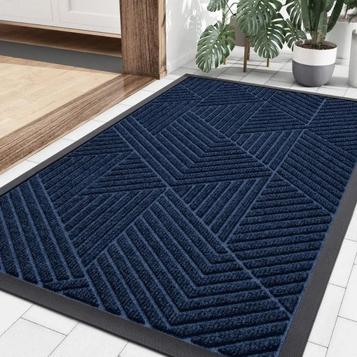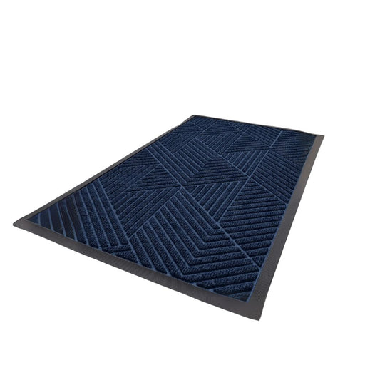 Anymat Doormat Navy Blue 4 Corner Stripe Rubber Non Slip Dirt Trap Absorbent Mat