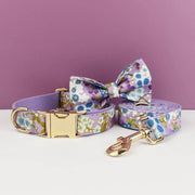 ANYWAGS Pet Bow Collar Leash Set Purple Floral Stylish Accessory with Safety Buckle Durable Strap