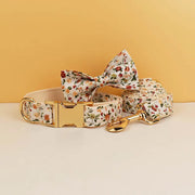 ANYWAGS Pet Bow Collar Leash Set White Floral Stylish Accessory with Safety Buckle Durable Strap