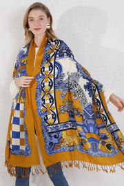 Anyyou 100% Merino Wool Mustartd Yellow Patterns Silk Satin Large Winter Scarf Pashmina Shawl Bandana Perfect For Women Ladies Fashion Style