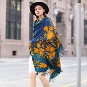 Anyyou 100% Merino Wool Yellow Blue Royal Silk Satin Large Winter Scarf Pashmina Shawl Bandana Perfect For Women Ladies Fashion Style
