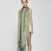 Anyyou 100% Mulberry Silk Green Long Scarf Luxury Brand Women Beach Shawl Wear Swimwear Pashimina Face Shield Foulard