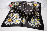 Anyyou Scarf for Women Black Daisy Silk Shawl Fashion Elegant High Quality for Spring Autumn Square Scarves 90*90cm