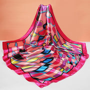 Anyyou Scarf for Women Cute Pink Printed Polyester Silk Big Square Silk 90*90cm Satin For Spring Summer Autumn Winter
