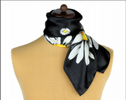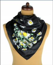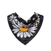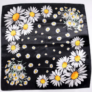 Anyyou Scarf for Women Daisy Black Floral Printed Square Silk Shawl For Summer Spring And Fall
