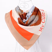 Anyyou Scarf for Women Dark Pink Lovely Bear Letters Twill Scarves Wraps Ladies Fashion Autumn Winter 90*90cm Dark Pink Silk Shawl