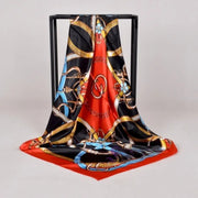 Anyyou Scarf for Women Red Black Printed Satin Silk Shawl Fashion Accessories Chain Flowers Pattern Autumn Winter Scarves