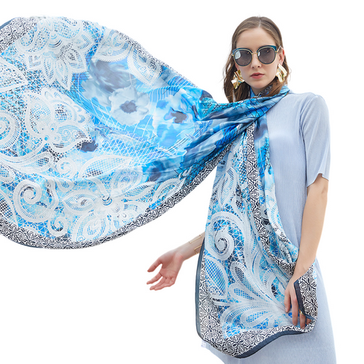 View full detailsAnyyou 100% Mulberry Silk Blue Long Scarf Luxury Brand Women Beach Shawl Wear Swimwear Pashimina Face Shield Foulard