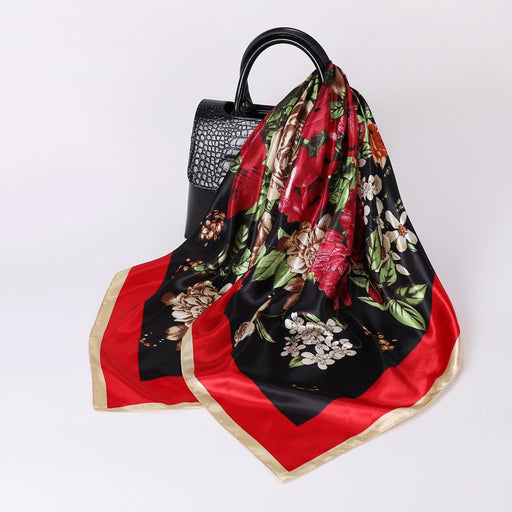 View full detailsAnyyou Scarf for Women Black Red Gold Printed Polyester Silk Big Square Silk Scarf 90*90cm Satin For Spring Summer Autumn Winter