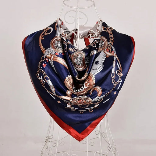 View full detailsAnyyou Scarf for Women Elegant Navy Blue Satin Silk Shawl Fashion Accessories Chain Flowers Pattern Autumn Winter Scarves