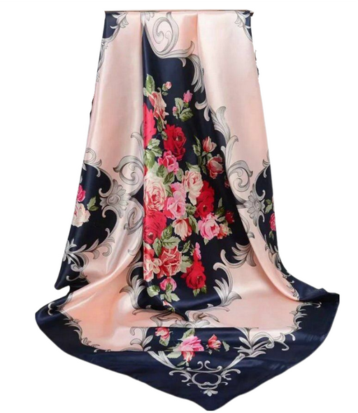 View full detailsAnyyou Scarf for Women Navy Blue Floral Pink Printed Polyester Silk Big Square Silk Scarf 90*90cm Satin For Spring Summer Autumn Winter