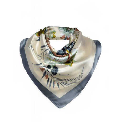 View full detailsAnyyou Scarf for Women Floral Grey Beige Print Square Silk Shawl For Summer Spring And Fall