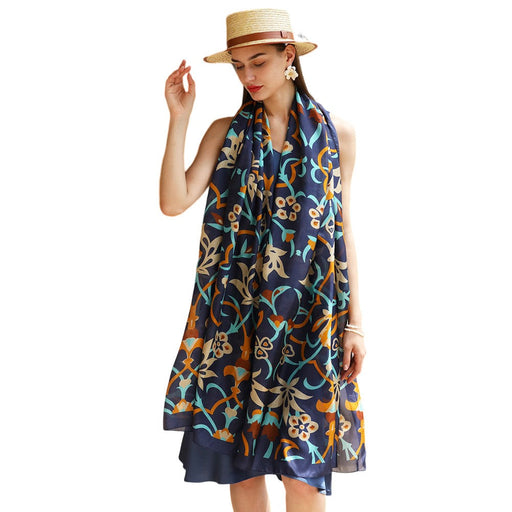 View full detailsAnyyou 100% Mulberry Silk Dark Blue Long Scarf Luxury Brand Women Beach Shawl Wear Swimwear Pashimina Face Shield Foulard