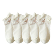 Anyfootwear 5 Pairs One Size 35-40 Summer Short Boat Invisible Chaussette Ribbon Print Cotton Ankle Breathable Women Sock
