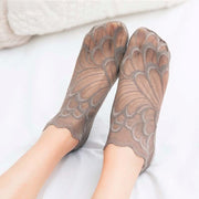 Anyfootwear 5 Pairs One Size 4-5 Light Brown Ankle Socks With Lace Peacock Flower Design