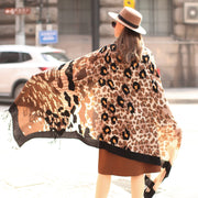 Anyyou 100% Merino Wool Brown Leopard Pattern Silk Satin Large Winter Scarf Pashmina Shawl Bandana Perfect For Women Ladies Fashion Style