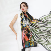 Anyyou 100% Mulberry Silk Ebony Black Long Scarf Luxury Brand Women Beach Shawl Wear Swimwear Pashimina Face Shield Foulard