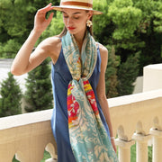 Anyyou 100% Mulberry Silk Pastel Blue Long Scarf Luxury Brand Women Beach Shawl Wear Swimwear Pashimina Face Shield Foulard