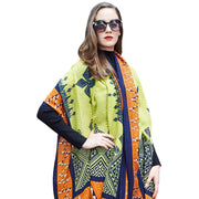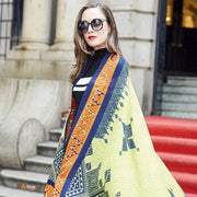 Anyyou 100% Pure Merino Wool Green Facet Pattern Stylish Poncho Winter Large Scarf With Trendy Pashmina Shawl Bandana For Womenfashion Design