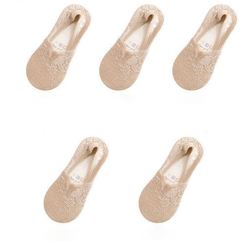 View full detailsAnyfootwear 5 Pairs Size 5-9 Fashion Socks Lace Flower Style Breathable Antiskid Invisible Ankle Socks for Women Beige