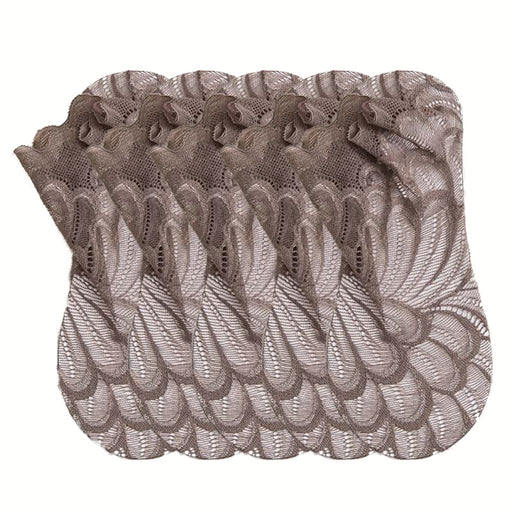 View full detailsAnyfootwear 5 Pairs One Size 4-5 Light Brown Ankle Socks With Lace Peacock Flower Design