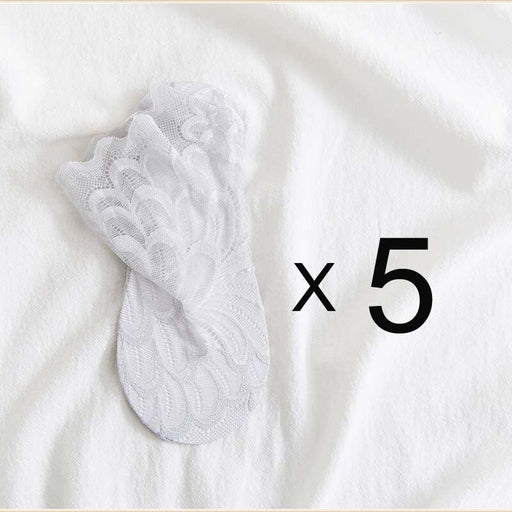 View full detailsAnyfootwear 5 Pairs One Size 4-5 White Fashion Summer Socks With Style Lace Peacock Flower Short Ankle Socks For Women