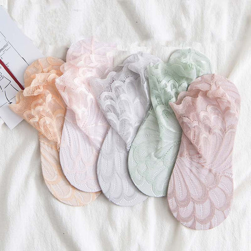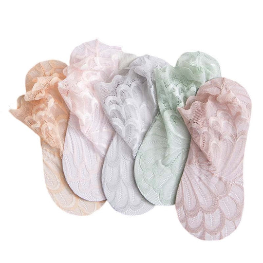 View full detailsAnyfootwear 5 Pairs One Size 4-5 Mixed Light Colors Fashion Summer Socks With Style Lace Peacock Flower Short Ankle Socks For Women