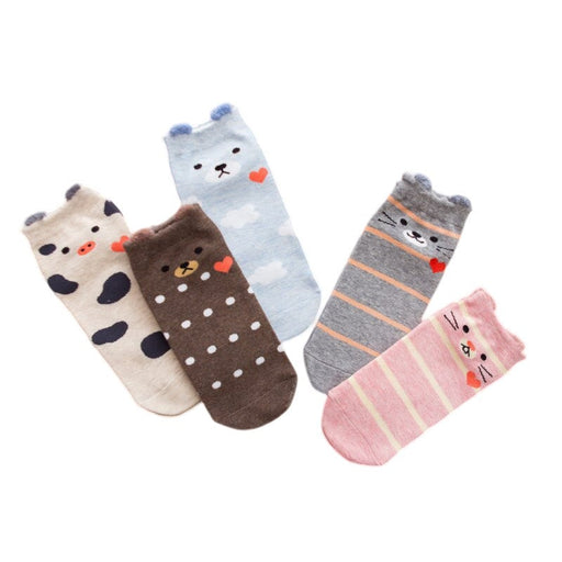 View full detailsAnyfootwear 5 Pairs One Size 5-9 Mixed Color Farm Animals Spring Summer Fashion Women Cotton Sox Cartoon Cute Girl Happy Funny Socks
