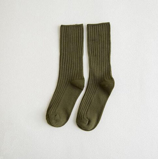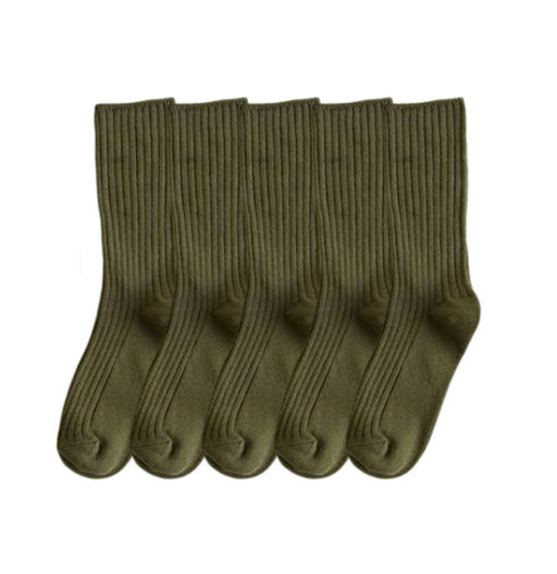 Anyfootwear 5 Pairs One Size 36-43 Green Retro Long Knitted Socks Cotton Autumn Winter Solid Color Women Student Girls