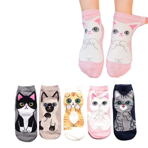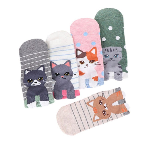 View full detailsAnyfootwear 5 Pairs One Size 5-9 Multicolor Cat Spring Summer Fashion Women Cotton Sox Cartoon Cute Girl Happy Funny Socks