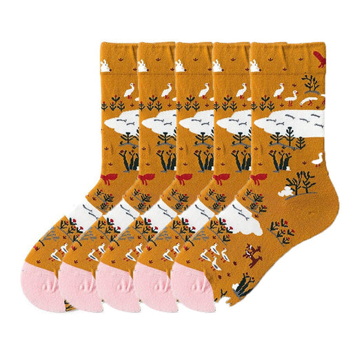 View full detailsAnyfootwear 5 Pairs Size 5-9 Fashion Long Sock Cartoon Personalized Creative Nature Yellow Abstract Print For Men Woman Foot Cold Winter Warm Comfortable Accessories