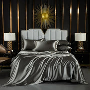 ANYHOUZ Bed Sheet Dust Grey Natural Mulberry Silk Duvet Cover Set