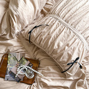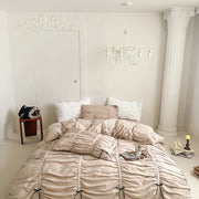 Anycozy Bedding Set Coffee Ruffle Pleated Duvet Cover Flat Bed Sheet and Pillowcases Bedroom Decor