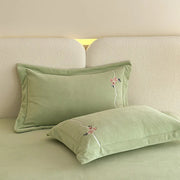 Anycozy Duvet Cover Set Light Green Flat Bed Sheet Soft Heavy Fluffy Floral Embroidery Quilt Bedding