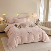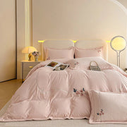 Anycozy Duvet Cover Set Pink Flat Bed Sheet Heavy Fluffy Floral Embroidery Quilt Bedding