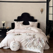 Anycozy Duvet Cover Set Light Pink Flat Bed Sheet Ultra Soft Egyptian Cotton Embroidery Luxury Bedding
