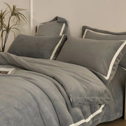 Anycozy Duvet Cover Set Plain Grey Flat Bed Sheet Cozy Fluffy Ultra Soft Velvet Bedding Comforter