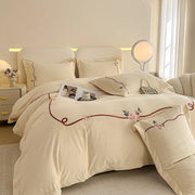 Anycozy Duvet Cover Set White Flat Bed Sheet Heavy Fluffy Floral Embroidery Quilt Bedding
