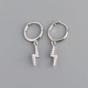 ANYCO Earrings Buckle Punk Lightning Piercing White Zircon Charms Goth Hoop For Women Party Jewelry Silver