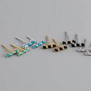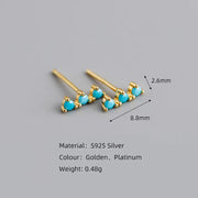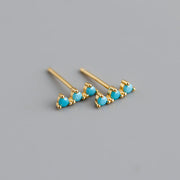 ANYCO Earrings Gold Plated Blue Turquoise Zircon Strip Geometric Bar Stud For Women Girl Teen Perfect Fashion Stylish Accessories Jewelry Gifts