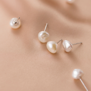 ANYCO Fashion Earrings Genuine Sterling Silver Natural Baroque Geometric Irregular Pearl Stud for Women Girl Office Jewelry Gift