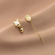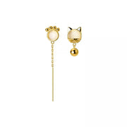 ANYCO Fashion Earrings Gold 925 Sterling Silver Unique Cat Claw Chain Tassel Bell for Women Cute Cat Jewelry